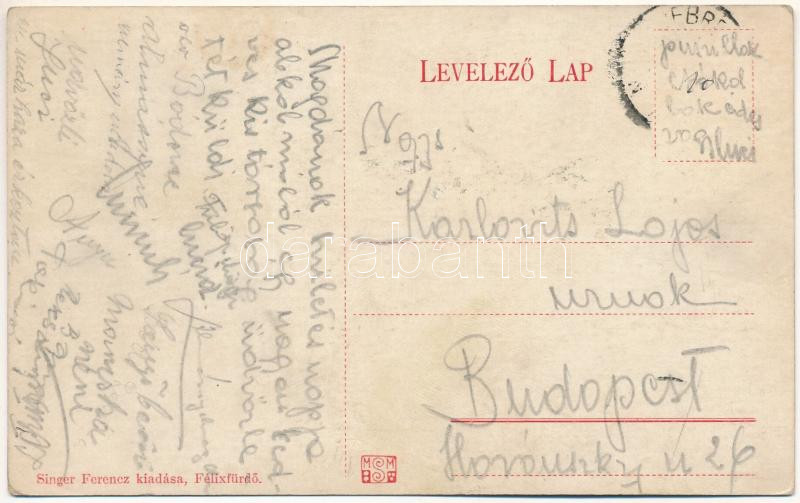 Félixfürdő, Baile Felix; Hőforrás. Singer Ferenc kiadása / spa, hot sp...