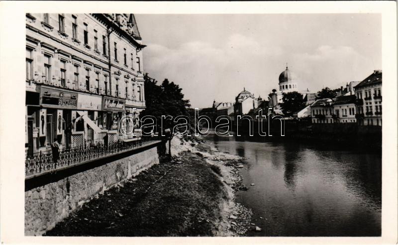 Nagyvárad, Oradea; Körösparti részlet, zsinagóga, Schwartz üzlete. Kap...