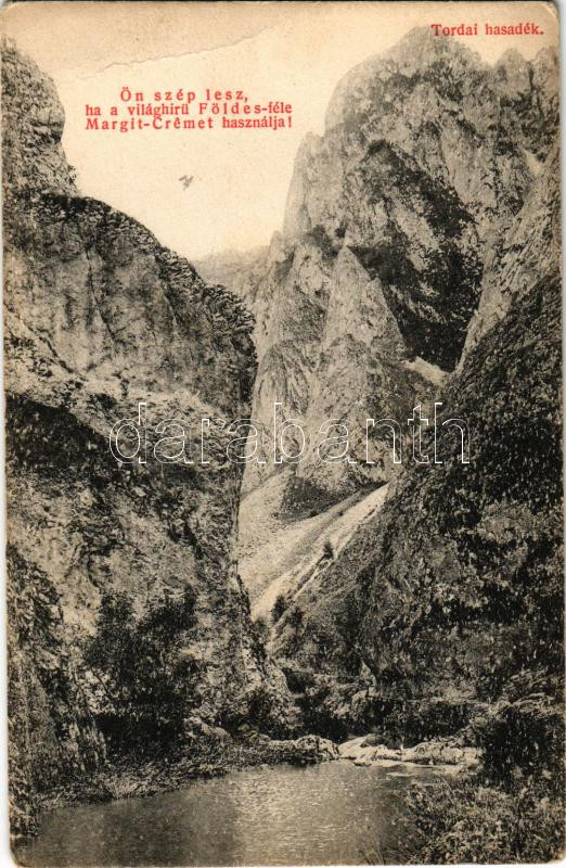 Tordai-hasadék, Cheile Turzii, Torda, Turda; Torda-hasadék, Földes-féle Margit Creme reklám / gorge, Hungarian cream advertisement (gyűrődés / crease)