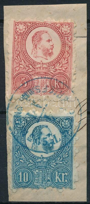 1871 Réznyomat 5kr + 15kr kivágáson kék / bule "PEST / BRIEFSAMML...