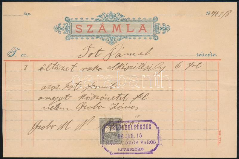 https://www.darabanth.com/en/506-Online-auction/506.0/Selected-Hungarian-items-and-collections/Single-hungarian-issues-at-a-very-low-starting-price~1/1894-Szamla-Nagykorosrol-okmanybelyeg-helyett-1kr-postabelyeggel~II3434105