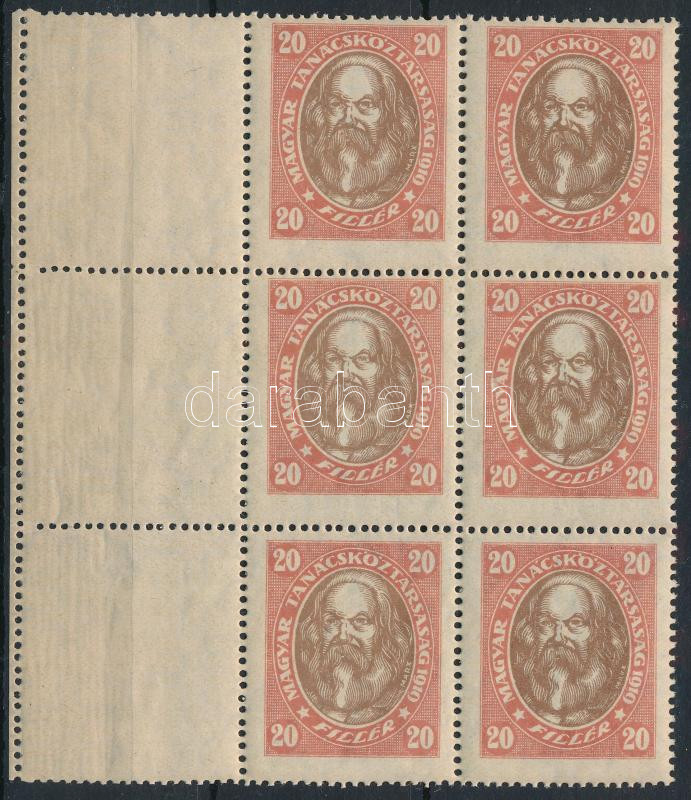 1919 Magyar Tanácsköztársasági arcképek 20f 6-os tömb, bal oldalon 3 ü...