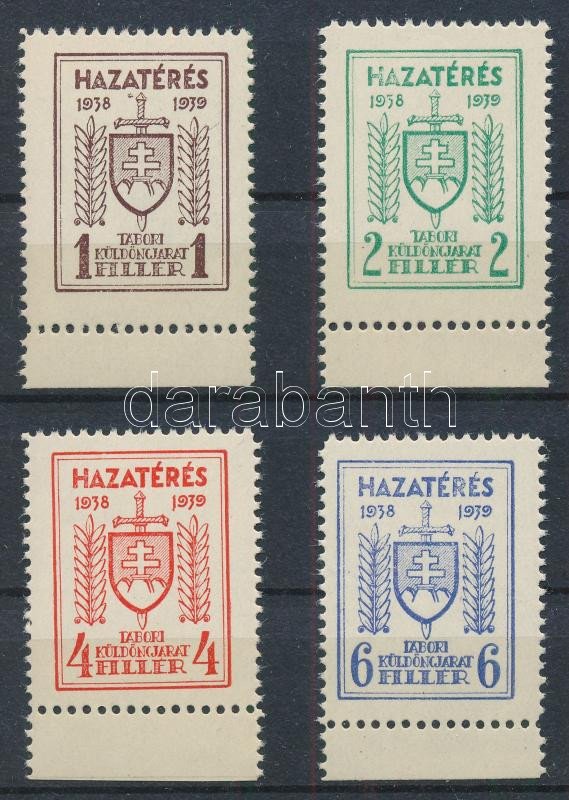 1939 Soproni tábori küldöncjárat II. kiadás ívszéli sorozat, az 1f festékfoltos (85.000+) / Sopron courier post stamp II. issue complete margin set