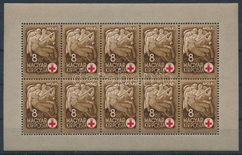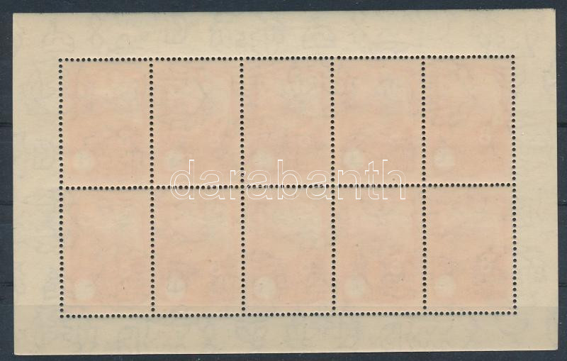 1942 Vöröskereszt I. 8f kisív átszivárgó teljes barna színnyomattal