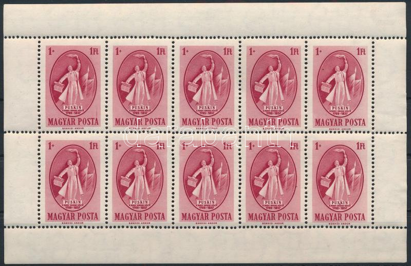 1949 Puskin 10-ers kisív végigfutó fogazással, jobb oldalon bepattant ...