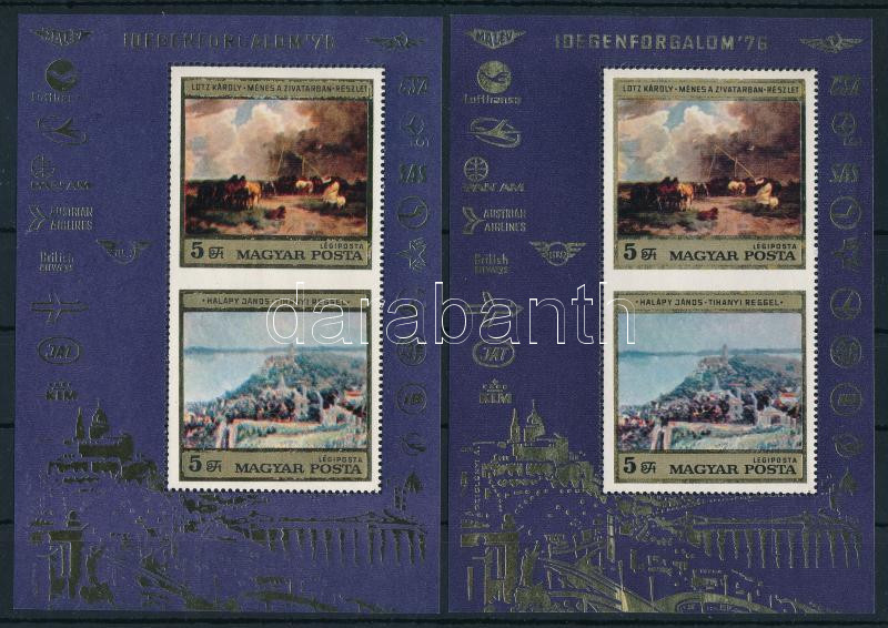 1976 Idegenforgalom blokk, festékhiányos nyomat: arany nyomáshiányok a blokk egész felületén, de erősen szembetűnően a blokk alsó keretén. Rendkívül ritka nyomási különlegesség, egyedi darab!! + támpéldány