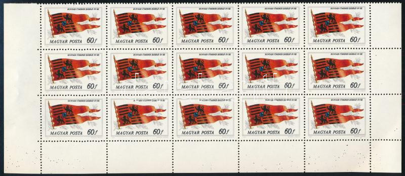 1981 Magyar történelmi zászlók 60f 15-ös tömb a fekete szín álkettős-n...