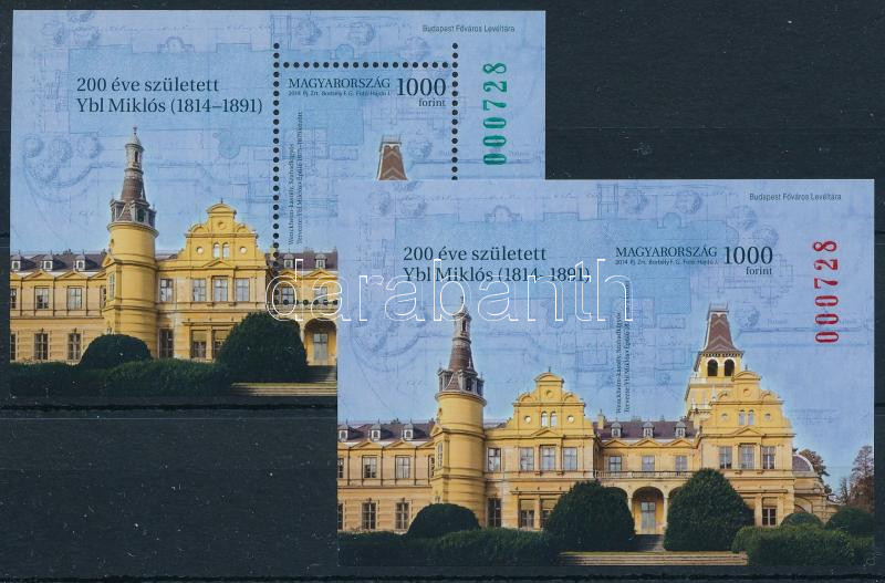 2014 Ybl Miklós túlfogazott és vágott blokk azonos sorszámmal (31.000)