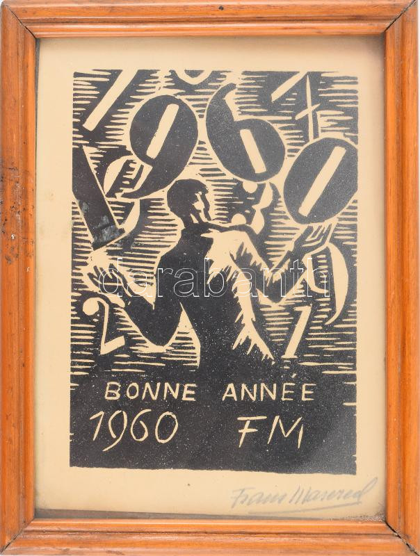 Frans Masereel (1889-1972): Újévi grafika 1960. Jelzett Üvegezett kere...