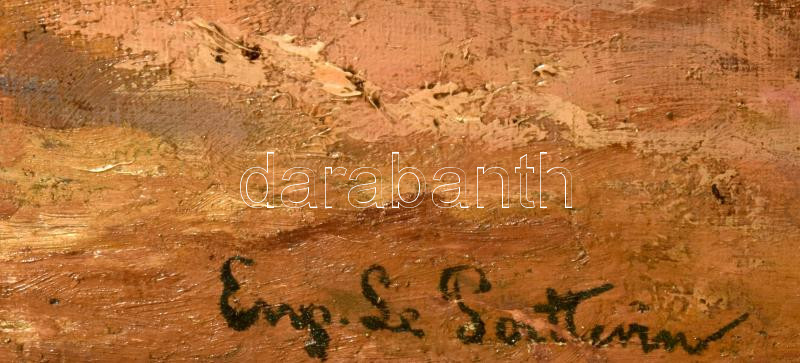 Eugen Le Potterin (?) jelzéssel: Tengerparti jelenet vitorlásokkal és ...