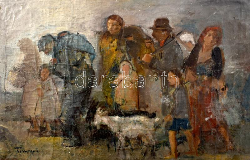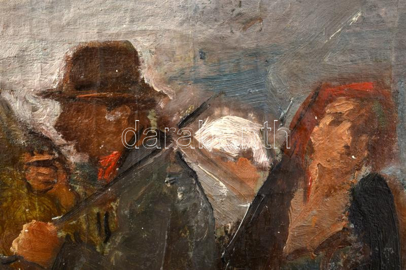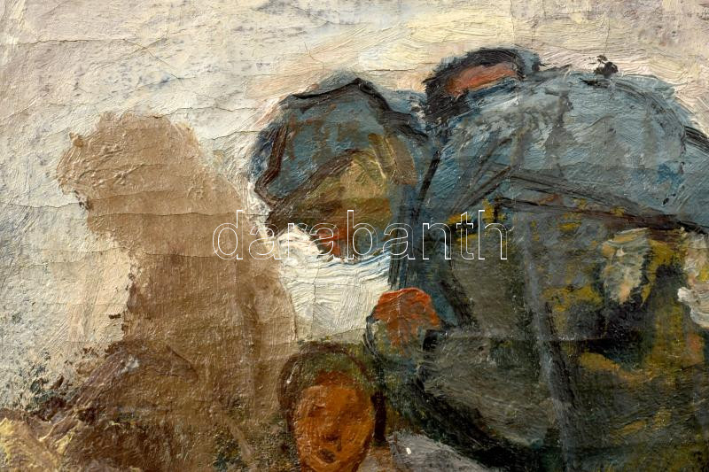 Tornyai jelzéssel: Vonuló társaság. Olaj, vászon. Vakráma nélkül. Töré...