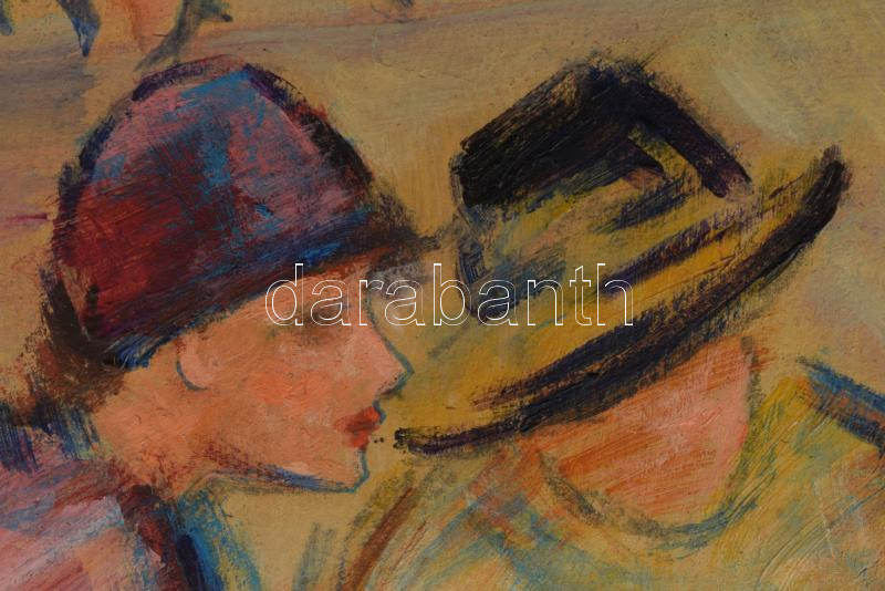 Vaszary J jelzéssel: Élet a Dunaparton. Olaj, papír. Kartonra kasírozv...