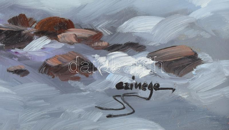 Czinege Zsolt (1964-): Téli táj. Olaj, farost, jelzett. 32×40 cm. Deko...