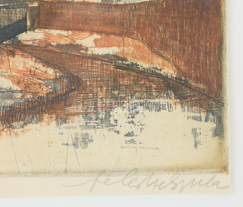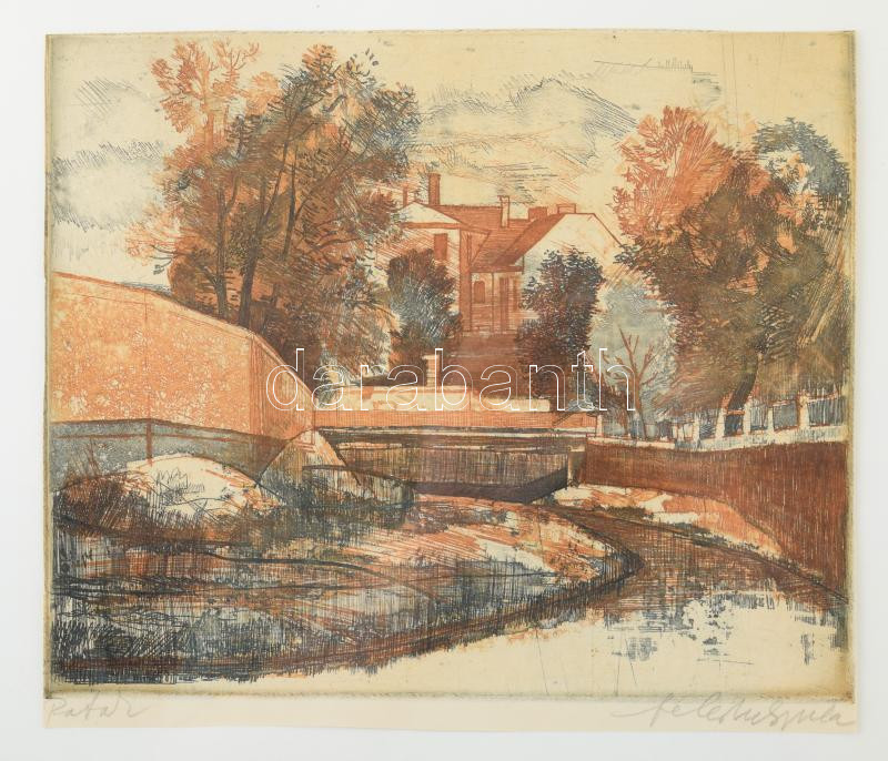 Feledy Gyula (1928-2010): Patak. Színes rézkarc, papír. Jelzett. Körbe...