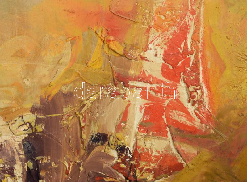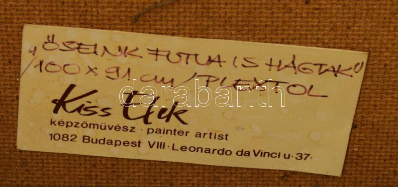 Description: Kiss Elek (1938-1995): "Őseink futva is hágtak". Olaj, farost. Jelezve jobbra középen, hátoldalán a művész címkéjén feliratozott. Dekoratív, kissé sérült fakeretben.104x91 cm. KIZÁRÓLAG SZEMÉLYES ÁTVÉTEL, NEM POSTÁZZUK / ONLY PERSONAL COLLECTION IN OUR OFFICE!