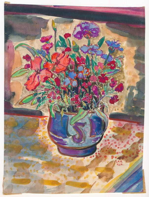 Nolipa István Pál (1907-1986): Csendélet, 1943. Akvarell, papír. Jelze...