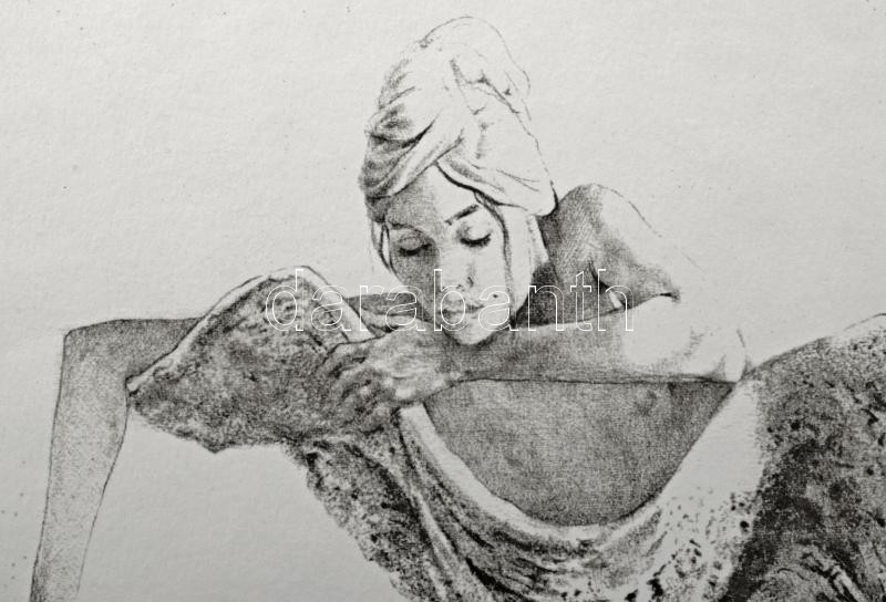 Párkányi Raab Péter (1967-): Leány gyöngysorral. Cinkográfia, papír, j...