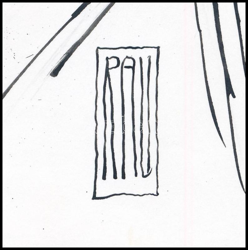 Rau Tibor (1934-2009): Pénz (azaz infláció). Tus, akvarell, papír, jel...