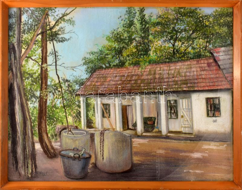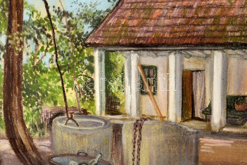 T. Visy Ilona (1920-2023): Délegyházi udvar, 1980-as évek. Pasztell, p...