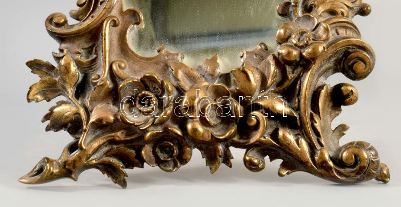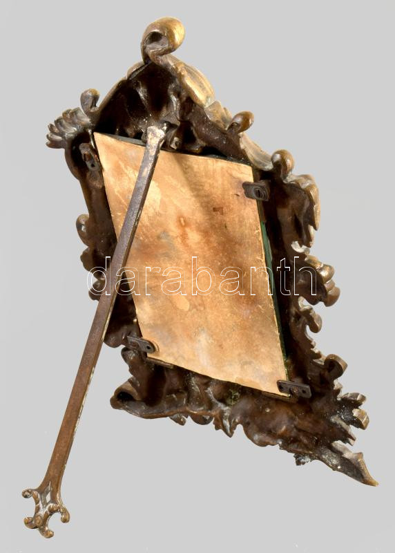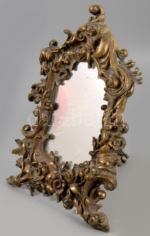 Gazdagon díszített puttó alakos asztali tükör. cca 19. sz. vége, bronz...
