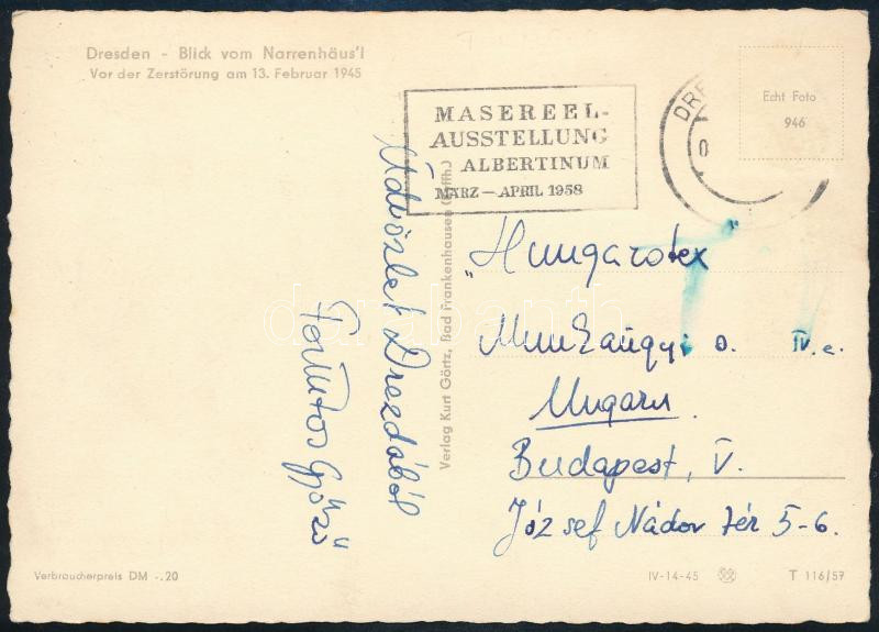 1958 Forintos Győző sakkozó bajnok által írt képeslap