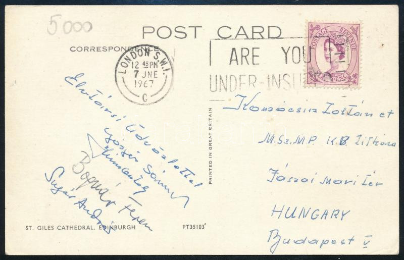 Komócsin Zoltán MSZMP KB Titkárnak szóló képeslap, Gáspár Ferenc politikus, Sugár András újságíró aláírásaival