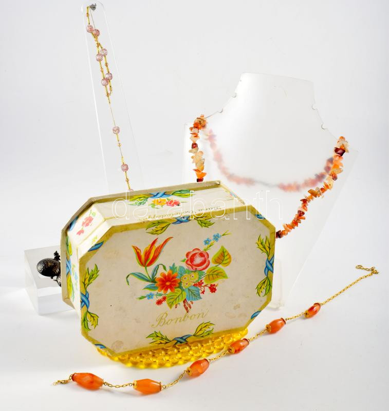 4 darab bizsu ékszer, retro bonbonos dobozban