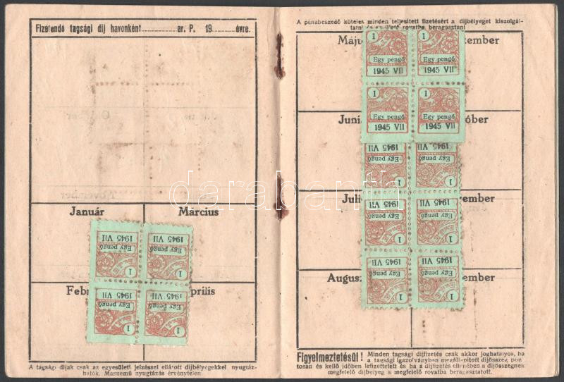 1942-1945 Az Ág. H. Evangélikus Egyházkerületek Jóléti Egyesülete tags... https://www.darabanth.com/en/508-Online-auction/508.0/Art-and-other-collectibles/Documents~679/1942-1945-Az-Ag-H-Evangelikus-Egyhazkeruletek-Joleti-Egyesulete-tagsagi-dijbefizetesi-kC3~II3436549