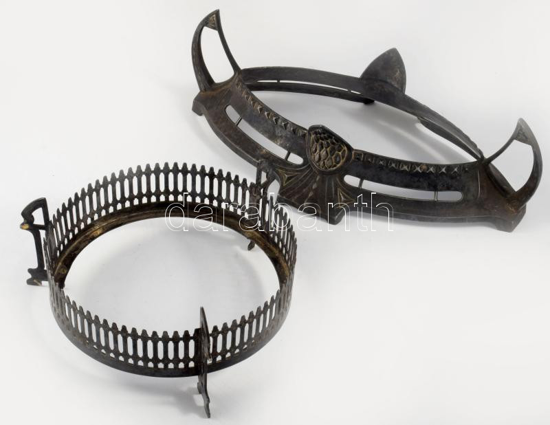 2 darab szecessziós kínáló ezüstözött szereléke üvegbetétek nélkül, h:...