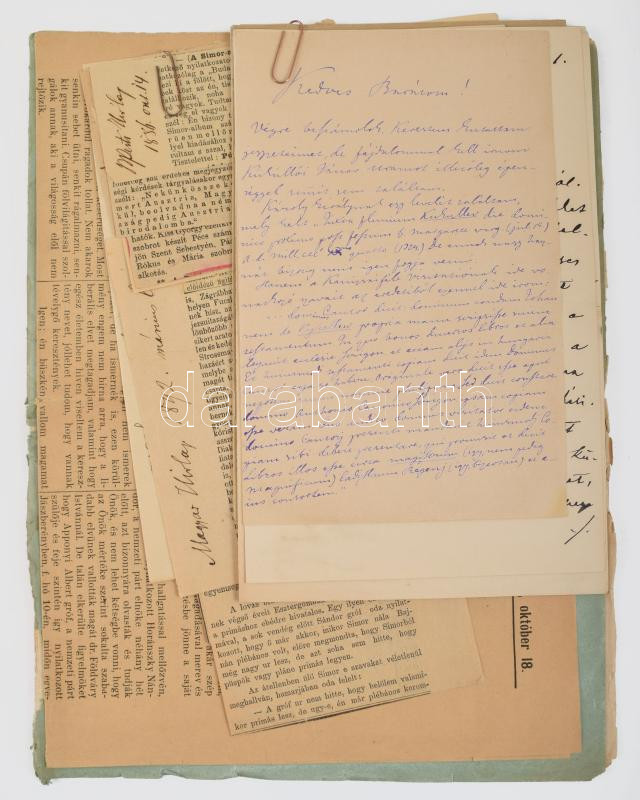 autográf levele ill. több levelének fogalmazványa. A tétel tartalmaz m?g P.A.-hoz többek között Knauz Nándor történetíró által irt leveleket, újságcikkeket ill.P?r Antalrol irt emlékbeszédet /kb 20 irat/