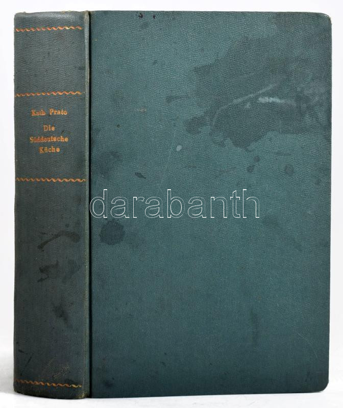 Prato, Katharina: Die süddeutsche Küche. Für Anfängerinnen und praktische Köchinnen zusammengestellt von - - . Graz-Wien, 1921, Verlagsbuchhandlung ,,Styria", VI+808 p.+ 4 (színes, litografált képtáblák) t. Német nyelven. Korabeli, aranyozott gerincű egészvászon-kötésben, foltos borítóval, helyenként kissé sérült, foltos lapokkal, egy erősebben sérült, javított lappal.