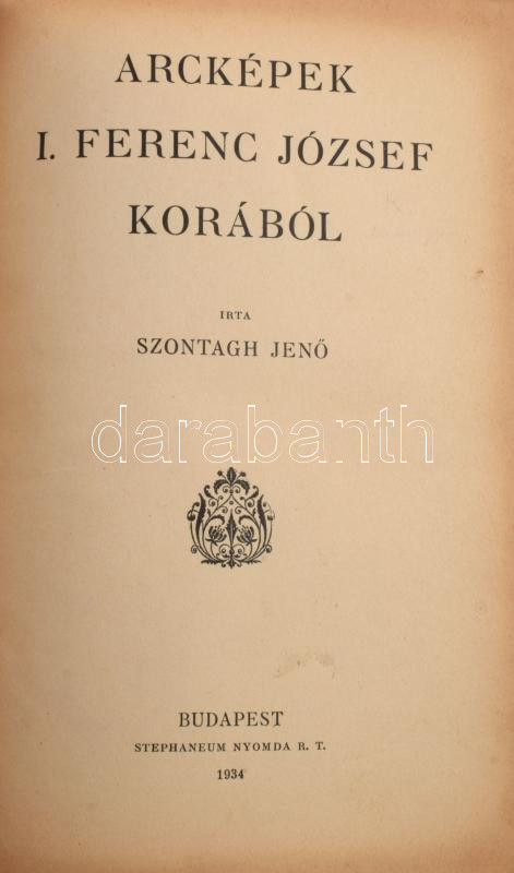 Szontagh Jenő: Arcképek I. Ferenc József korából. Bp., 1934, (Stephane... https://www.darabanth.com/en/508-Online-auction/508.0/Books/Books-History~745/Szontagh-Jeno-Arckepek-I-Ferenc-Jozsef-korabol-Bp-1934-Stephaneum-ny-79plus1-p-Atkoto~II3442869