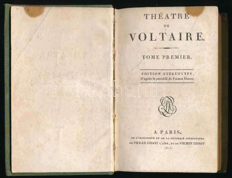 https://www.darabanth.com/en/508-Online-auction/508.0/Books/Books-Other-languages~757/Theatre-de-Voltaire-Tome-premier-Paris-1813-Pierre-Didot-Egeszvaszon-kotes-kopottas-alla~II3438784
