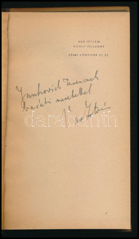 https://www.darabanth.com/en/508-Online-auction/508.0/Books/Books-Other-rarities~761/Vas-Istvan-Romai-pillanat-DEDIKALT-Jankovich-Ferencnek-Bp-1943-Revai-Felvaszon-kotes-~II3442710