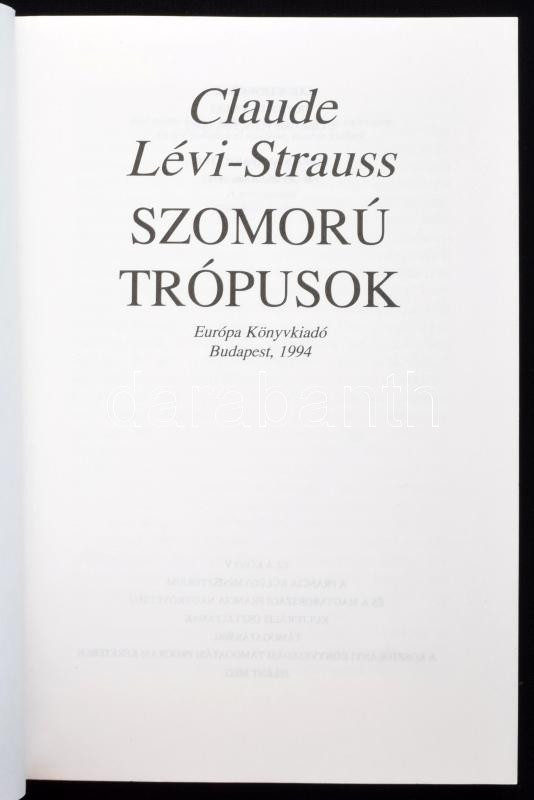 https://www.darabanth.com/en/508-Online-auction/508.0/Books/Books-Travelling-Local-History~742/Levi-Strauss-Claude-Szomoru-tropusok-Bp-1994-Europa-Kiadoi-papirkotes-jo-allapotba~II3439391