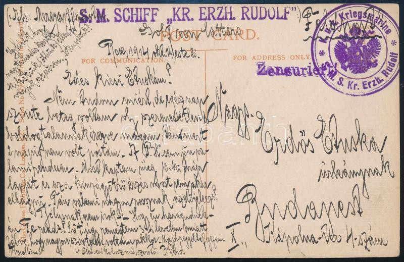 1914 Tábori posta képeslap / Field postcard "S.M.S. Kr. Erzh. Rudolf"