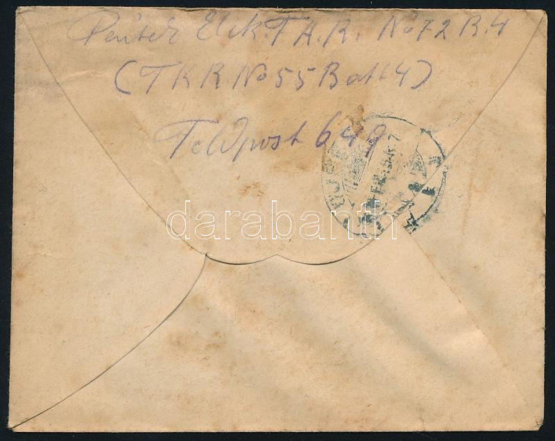 1918 Tábori posta levél "K.u.k. Res. Feldkanonenregiment Nr. 55." + "TP 649 c"