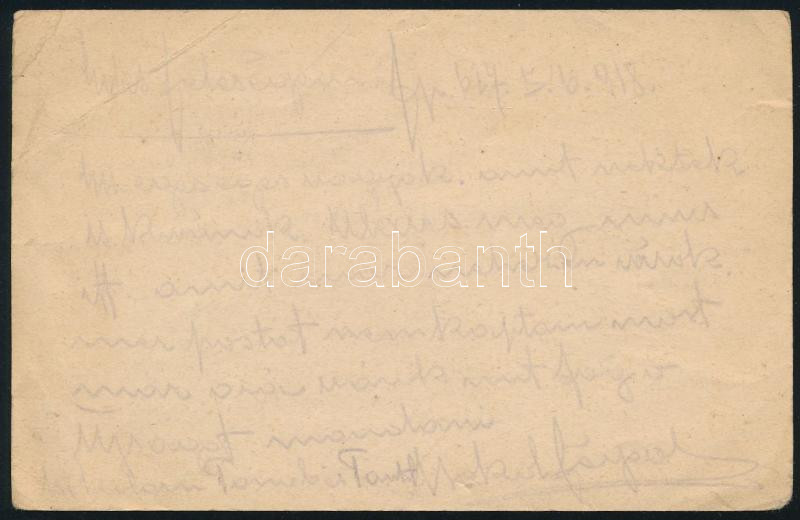 https://www.darabanth.com/en/508-Online-auction/508.0/Hungarian-philately-and-postal-history/Austro-Hungarian-fieldpost-WWI~38/1918-Tabori-posta-levelezolap-VASAS-postaugynoksegi-belyegzessel-plus-FP-627-a~II3442013