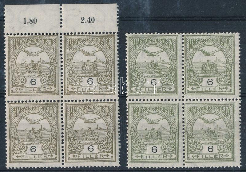 1913 Turul 6f 2 db négyestömb álló vízjellel, különböző színekben