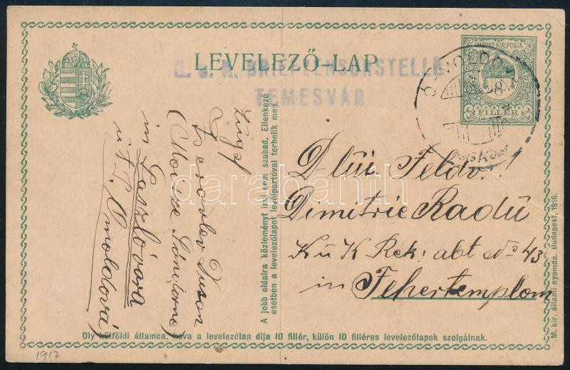 https://www.darabanth.com/en/508-Online-auction/508.0/Hungarian-philately-and-postal-history/Issues-between-1900-1919~34/1917-8f-dijjegyes-levelezolap-temesvari-cenzuraval-O-MOLDOVA-Fehertemplom~II3171570