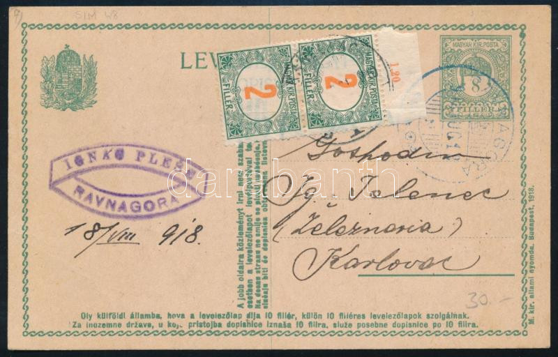 https://www.darabanth.com/en/508-Online-auction/508.0/Hungarian-philately-and-postal-history/Issues-between-1900-1919~34/1918-Levelezolap-4f-portoval~II3409693