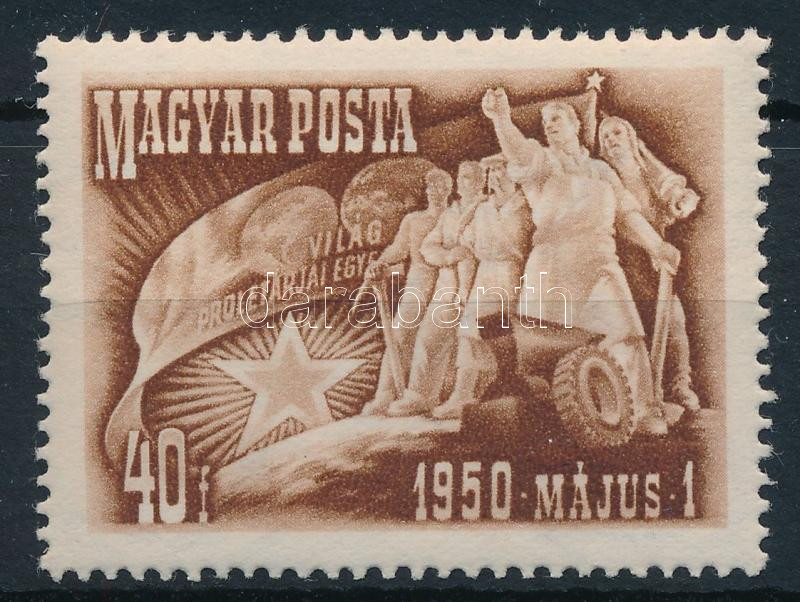 https://www.darabanth.com/en/508-Online-auction/508.0/Hungarian-philately-and-postal-history/Issues-between-1946-1956~50/1950-Majus-1-40f-szamvizjellel~II3443298