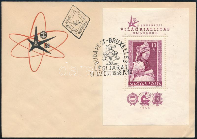 https://www.darabanth.com/en/508-Online-auction/508.0/Hungarian-philately-and-postal-history/Issues-between-1957-1969~51/1958-Brusszeli-vilagkiallitas-blokk-FDC-n~II3441636