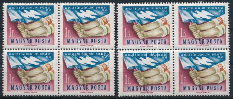 1959 Szovjet bélyegkiállítás 1Ft négyestömb, a bordó szín az alkarra c...