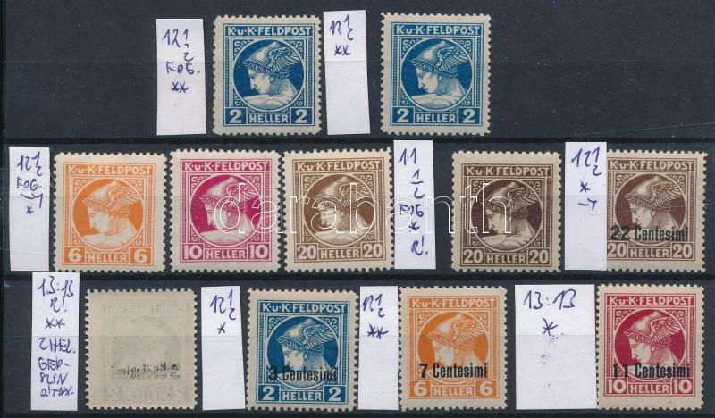 1916-1918 Feldpost és Feldpost Olaszország Hírlapbélyeg tétel stecklapon, benne klf fogazások, eltérő színárnyalatok, gépszínátnyomat