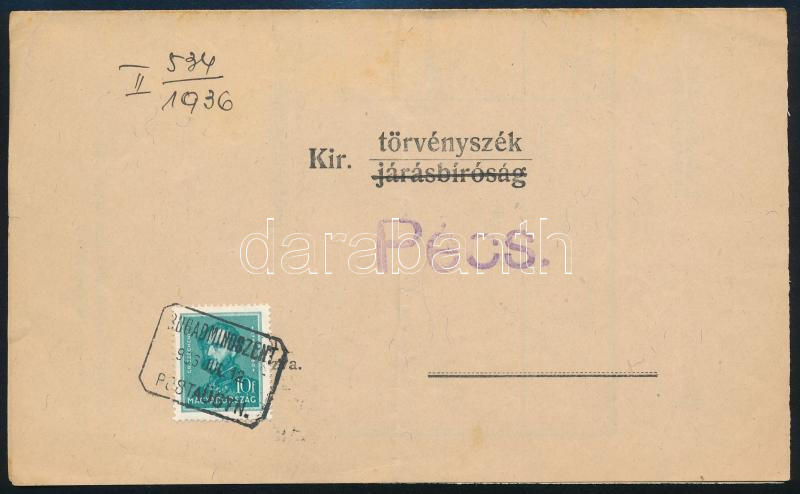 https://www.darabanth.com/en/508-Online-auction/508.0/Hungarian-philately-and-postal-history/Pengo-period-1926-1944~46/1936-Kezbesitesi-bizonyitvany-BOGADMINDSZENT-postaugynoksegi-belyegzessel~II2821150