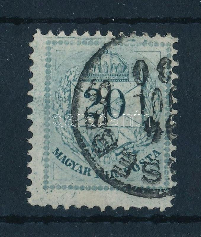 https://www.darabanth.com/en/508-Online-auction/508.0/Hungarian-philately-and-postal-history/The-issues-between-1874-1899~32/1881-Szinesszamu-20kr-11-12-fogazassal-lemezhibak-folt-az-ertekszam-0-jaban~II3433074