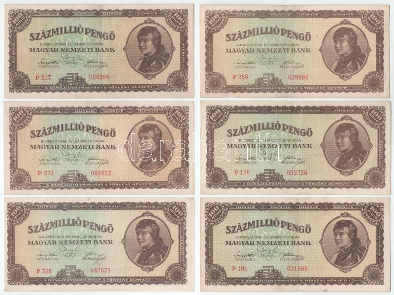 https://www.darabanth.com/en/508-Online-auction/508.0/Numismatics/Hungarian-Banknotes~835/1946-100000000P-6x-TXF-F-szep-papir3Cbr-3E-Adamo-P27~II3439475