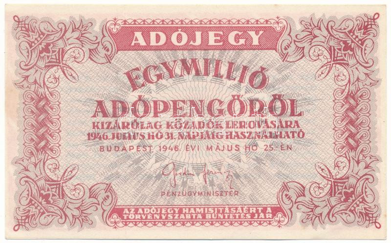 1946. 1.000.000AP vastagabb fehér papíron T:AU