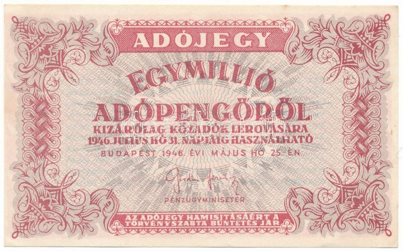 1946. 1.000.000AP vastagabb fehér papíron T:AU
